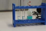 Die beiden Mädchen sind begeistert! Sie sind zum ersten Mal im Schülerlabor und können sich das ein oder andere Experiment für ihre nächste Geburtstagsparty vorstellen. Am Tag vorher waren die beiden beim Biologie-Forschertag, der ebenso ein voller Erfolg war: Sie haben Fische aus dem Teich gefischt, Brote mit RUB-Honig gegessen, Minze angebaut, Tee aus Apfelsaft und Kräutern hergestellt und viel über Bäume, Pflanzen und Blumen gelernt.
